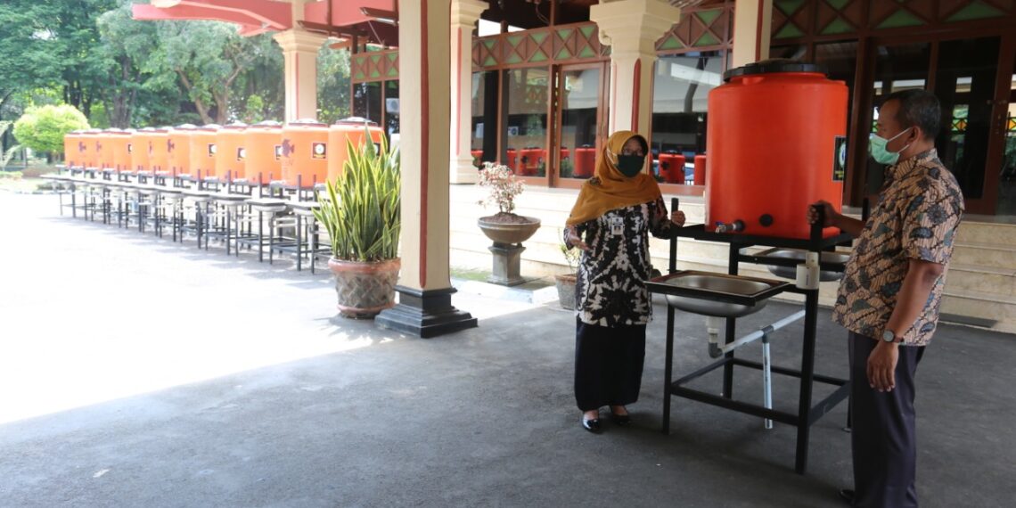 Slawi – Kamis (9/4), Perumda Tirta Ayu Kabupaten Tegal memberikan bantuan secara simbolis berupa tiga belas tempat cuci tangan. Diterima langsung Bupati Tegal Umi Azizah, bantuan tersebut akan ditempatkan di pasar-pasar. Hal ini dimaksudkan agar himbauan cuci tangan harus diimbangi dengan sarana pendukung.