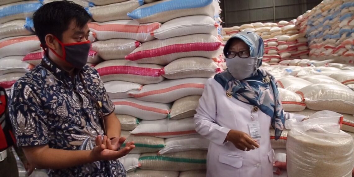 Slawi – Jamin kebutuhan pangan selama masa tanggap darurat bencana Covid-19 ini, Pemerintah Kabupaten Tegal menyiapkan Program Jaring Pengaman Sosial (JPS). Tak kurang dari 4.180 ton beras kualitas premium rencananya akan didistribusikan untuk mencukupi kebutuhan pangan 69.667 keluarga terdampak pandemi Covid-19 selama tiga bulan kedepan. Pendistribusian untuk bulan April ini akan dilakukan secara bertahap mulai besok, Kamis (23/4). Sebelum dibagikan, Bupati Tegal Umi Azizah mengecek kualitas dan ketersediaan beras tersebut di Gudang Bulog Procot pada Rabu (22/4) pagi.