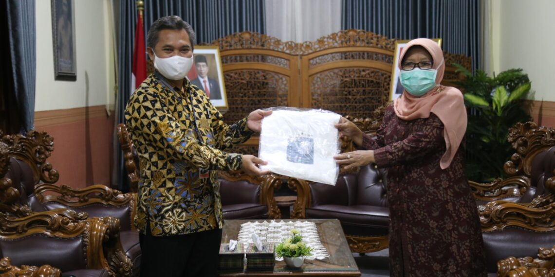 Slawi – Bupati Tegal Umi Azizah menerima bantuan dari Bank Indonesia Cabang Tegal berupa 60 baju hazmat dan 4.000 masker non medis anti microbial. Penyerahan bantuan tersebut dilakukan secara langsung oleh Kepala Bank Indonesia Cabang Tegal Taufik Amrozi kepada Umi di Pendopo Rumah Dinas Bupati Tegal pada Jumat (24/4) siang kemarin.