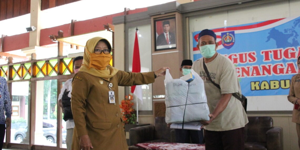 Bupati Tegal Salurkan Bantuan 10.000 Masker Kain dari Korpri untuk Pedagang Pasar