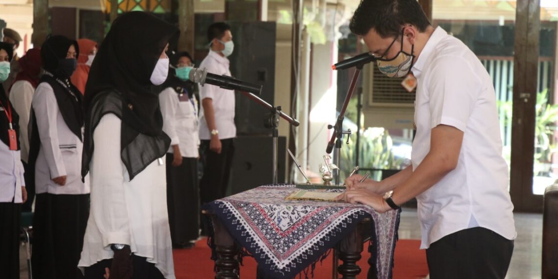 Slawi – Sebagai Aparatur Sipil Negara (ASN) dituntut untuk mengedepankan prinsip profesionalisme guna menunjang peningkatan kinerja pemerintahan. Selain itu, ASN juga dituntut menciptakan inovasi dan perubahan cepat dalam melaksanakan tugas-tugas pemerintahan, pembangunan dan utamanya pelayanan publik. Untuk itu, pada momen Pengambilan Sumpah Jabatan dan Pelantikan Pejabat Fungsional di Lingkungan Pemerintah Kabupaten Tegal, Ardie menantang para pejabat fungsional baru untuk merancang inovasi kreatif yang berdampak kemajuan, pada Rabu (24/06/2020) di Pendopo Amangkurat Setda Pemkab Tegal.