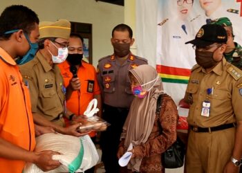 Slawi - Bantuan sosial (bansos) pangan masyarakat terdampak Covid-19 dari Pemerintah Provinsi Jawa Tengah untuk pelaksanaan bulan ke-1 mulai disalurkan ...
