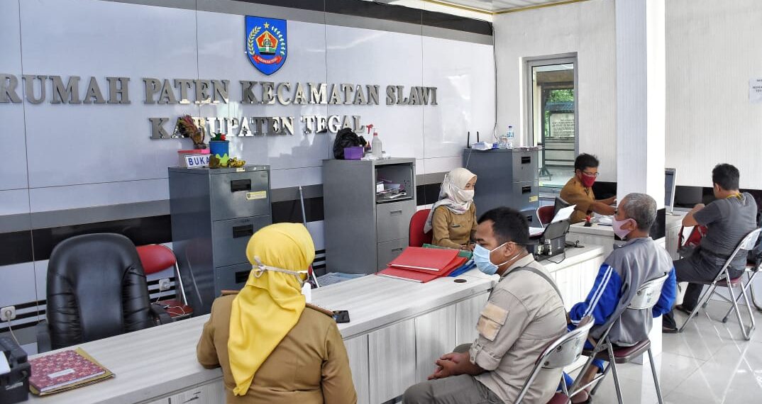 Meski dihadapkan pada situasi pandemi wabah virus corona, Rumah Paten di 18 kantor kecamatan di Kabupaten Tegal tetap buka dan melayani. Namun demikian, demi keselamatan bersama, layanan administrasi di Rumah Paten ini memberlakukan protokol kesehatan secara ketat, salah satunya mewajibkan penggunaan masker bagi warga pemohon. Tanpa mengenakan masker, petugas Rumah Paten tidak akan melayani keperluan pemohon.