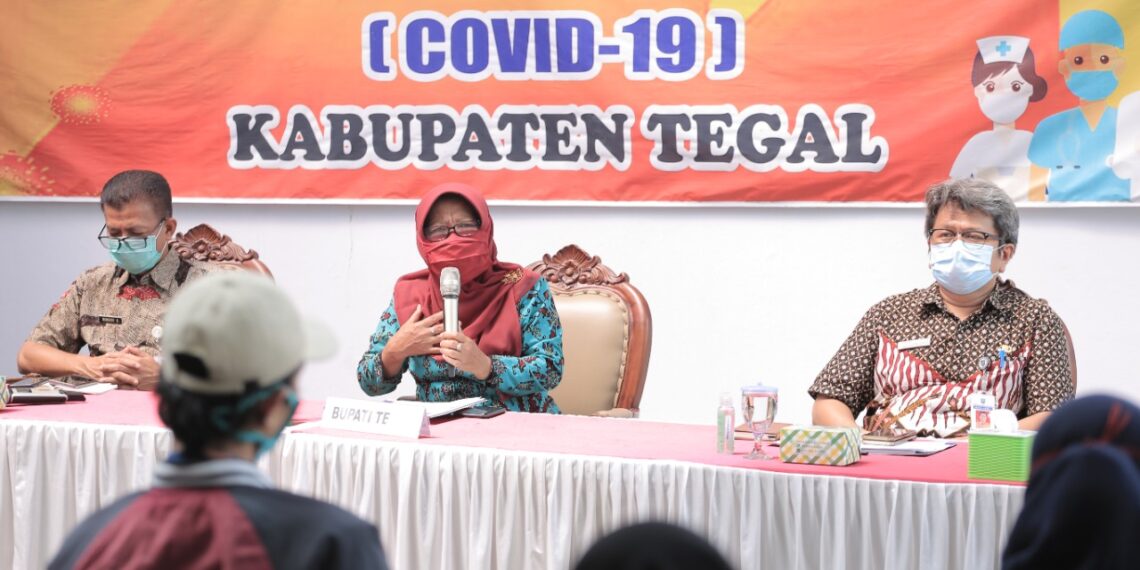 “Kasus persebaran Covid-19 di Kabupaten Tegal setiap harinya terus meningkat. Artinya, kondisi kita masih belum aman. Tapi, tidak selamanya pula kita bisa membatasi aktifitas sosial masyarakat, karena dampak di bidang sosial dan ekonomi juga tidak kalah besar. Tidak ada cara lain, selain secepatnya kita beradaptasi dengan kebiasaan baru. Saya minta seluruh elemen masyarakat untuk terus mengkampanyekan 3M memakai masker, mencuci tangan dengan sabun dan menjaga jarak,” pesan Umi.