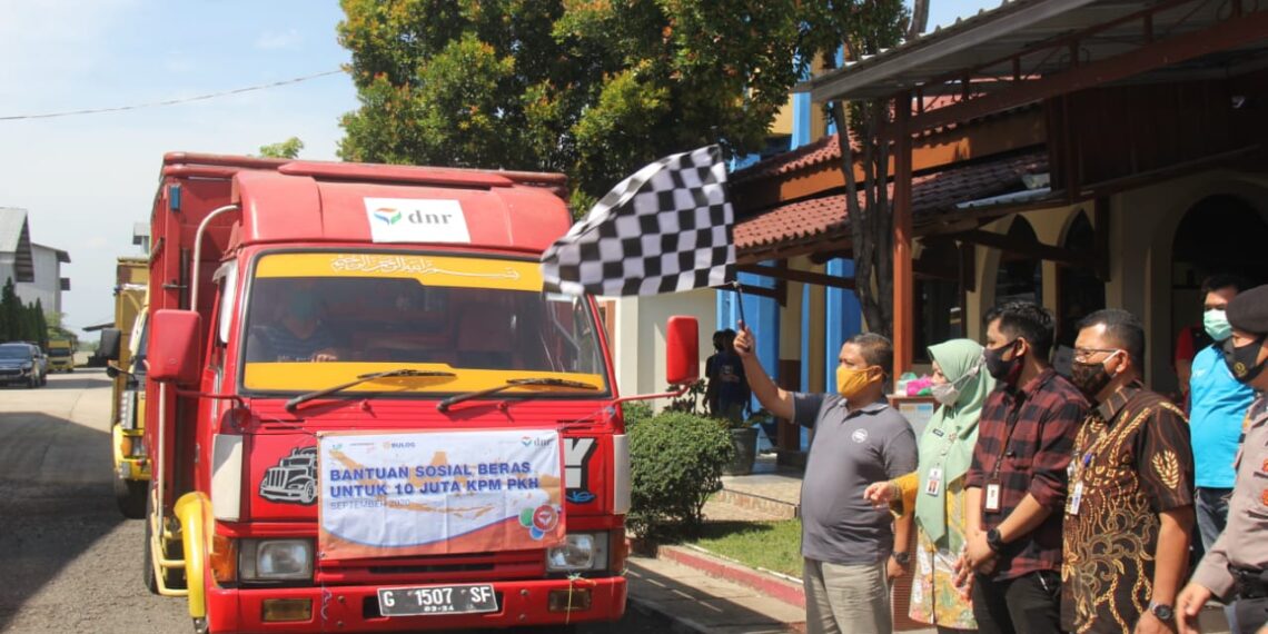 Kramat – Sebanyak 60.054 keluarga penerima manfaat (KPM) Program Keluarga Harapan (PKH) di Kabupaten Tegal mendapat bantuan sosial berupa beras kualitas medium masing-masing sebanyak 15 kilogram. Bantuan tersebut resmi diserahkan Bupati Tegal Umi Azizah yang diwakili Asisten Administrasi Perekonomian dan Pembangunan Moh. Soleh kepada perwakilan lima orang KPM PKH. Penyaluran bansos beras PKH dari Kementerian Sosial RI kepada keluarga penerima manfaat ini dilakukan oleh PT. Dosni Roha Logitik di Gudang Bulog di Desa Munjung Agung, Kecamatan Kramat, Jumat (25/09/2020).