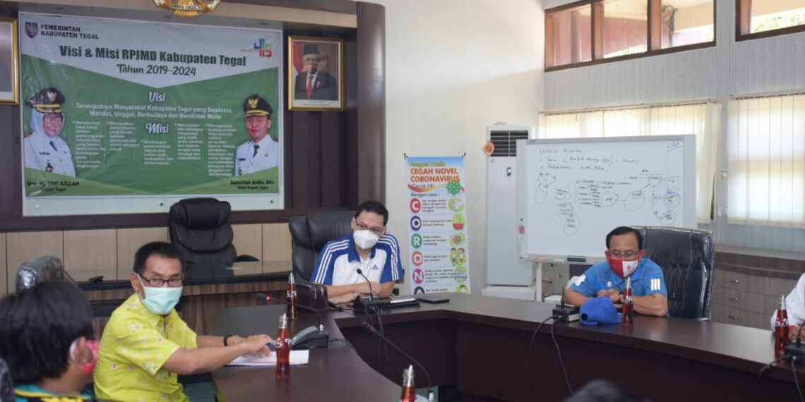 Slawi – Palang Merah Indonesia (PMI) Kabupaten Tegal melakukan audiensi bersama Wakil Bupati Tegal Sabilillah Ardie selaku Ketua Umum Bulan Dana dan Bulan Pelajar Palang Merah Indonesia (PMI) 2020 serta Inspektorat Kabupaten Tegal untuk memperjelas Standar Operasional Prosedur (SOP) Bulan Dana dan Bulan Pelajar 2020, Jumat (25/09/2020) pagi di Ruang Rapat Sekda Kabupaten Tegal. Menurut Ketua Pengurus PMI Kabupaten Tegal Iman Sisworo hal ini perlu dilakukan karena banyaknya kendala yang terjadi selama pemungutan Bulan Dana PMI tahun 2020 di Kabupaten Tegal, mulai dari komentar perorangan hingga kritikan beberapa lembaga kepada PMI.