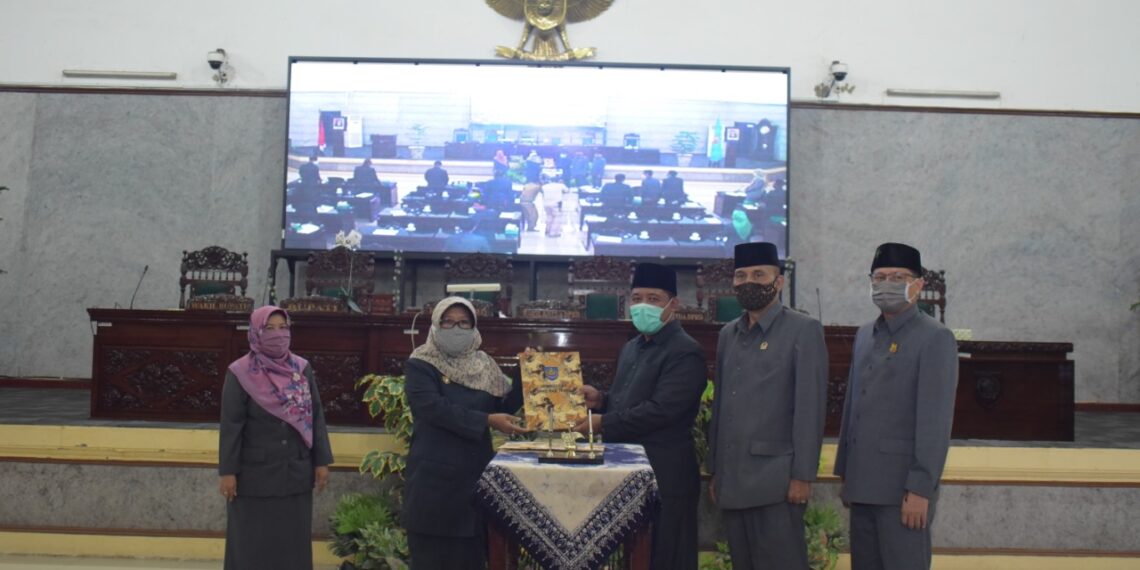 Slawi – Bupati Tegal Umi Azizah mengahdiri Rapat Paripurna Dewan Perwakilan Rakyat Daerah (DPRD) Kabupaten Tegal dalam Penetapan Peraturan Daerah Tentang Perubahan Anggaran Pendapatan dan Belanja Daerah (APBD) Kabupaten Tegal Tahuan Anggaran 2020, Selasa (29/09/2020) yang bertempat di Gedung DPRD Kabupaten Tegal. Dalam sambutannya, Umi menyampaikan penghargaan dan terima kasih kepada pimpinan dan para anggota DPRD yang telah sukses menyelesaikan pembahasan rancangan Peraturan Daerah (Perda) Kabupaten Tegal tentang perupabahan APBD Kabupaten Tegal Tahun 2020, baik di tingkat Komisi maupun Badan Anggaran. “Hal ini tentunya kita lakukan sebagai wujud pelayanan yang terbaik untuk masyarakat,” ucapnya.