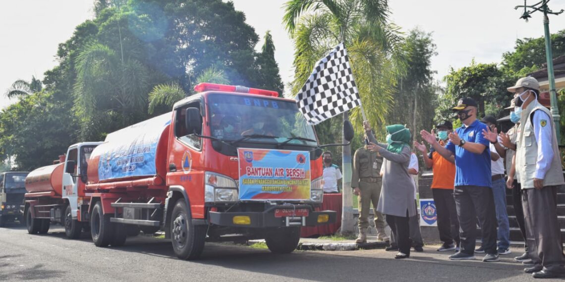 Slawi – Atasi kesulitaan air bersih akibat kekeringan di lima wilayah kecamatan di Kabupaten Tegal, Pemkab Tegal siapkan 325 tangki air bersih untuk didistribusikan kepada warga yang membutuhkan. Pelepasan pendistribusian air bersih tersebut dilakukan secara simbolis oleh Bupati Tegal Umi Azizah di depan Pendopo Amangkurat Kantor Bupati Tegal, Jumat (02/10/2020) pagi.