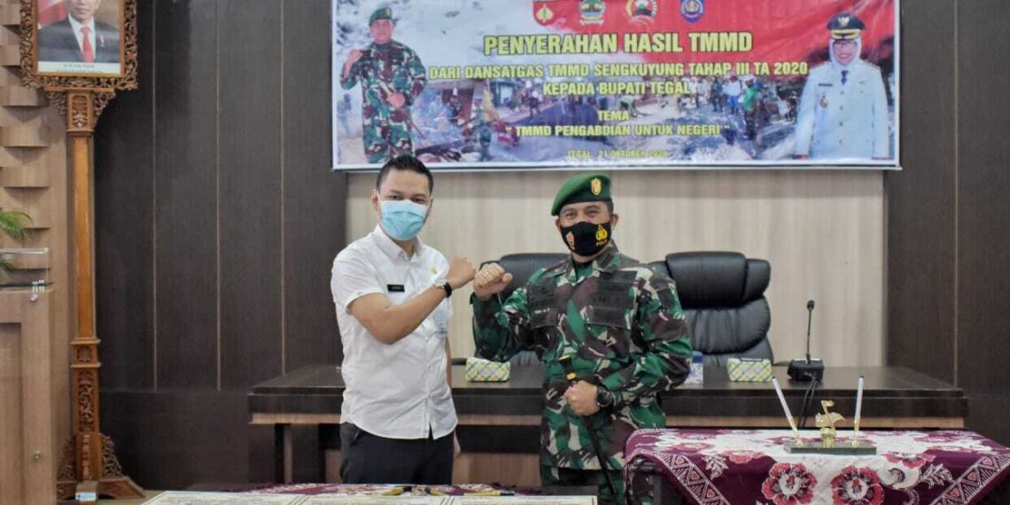 Slawi – Kegiatan TNI Manunggal Membangun Desa (TMMD) Sengkuyung tahap III resmi ditutup oleh Wakil Bupati Tegal Sabilillah Ardie di Ruang Rapat Bupati Tegal pada Rabu, (21/10/2020) siang. Penutupan ini ditandai dengan penandatanganan prasasti TMMD Sengkuyung Tahap III Desa Tegalandong, Kecamatan Lebaksiu, Kabupaten Tegal oleh Ardie dan Komandan Komando Distrik Militer (Dandim) 07/12 Tegal Sutan Pandapotan Siregar.