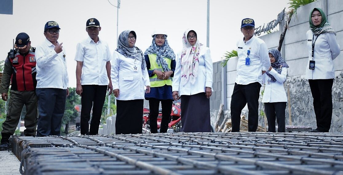Bupati Tegal Umi Azizah (keempat dari kiri) saat menginspeksi pekerjaan perkerasan jalan beton ruas jalan Sigentong-Semedo di Desa Semedo, Kecamatan Kedungbanteng, Rabu (27/11/2019).