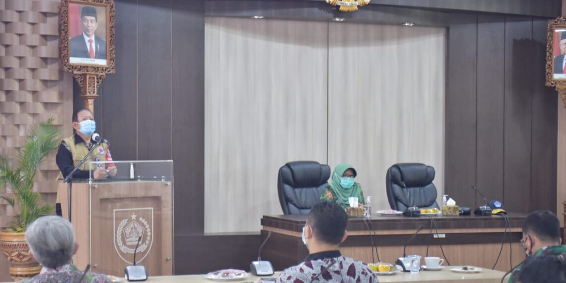 Slawi – Pertambahan kasus Covid-19 berawal dari kurangnya kedisiplinan warga dalam menerapkan protokol kesehatan. Bahkan, saat jumlah kasusnya sudah menembus angka 500 ribu, masih ada sekitar 17 persen publik yang tidak percaya akan adanya Covid-19. Informasi ini disampaikan Pejabat Penghubung Satgas Penanganan Covid-19 Nasional untuk wilayah Jawa Tengah Brigjen Pol (Purn) Oneng Subroto saat melakukan kunjungan kerjanya, Kamis (03/12/2020), di Ruang Rapat Bupati Tegal.