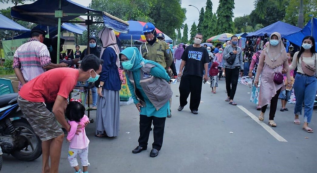 “Saya sengaja pagi ini datang ke sini untuk mengecek kepatuhan warga pedagang dan petugas Satgas Covid-19 dalam mengendalikan warga pengunjung menerapkan protokol kesehatan. Saya melihat ada kelonggaran. Tidak saja warga pedagang dan pengunjung yang kedapatan melepas maskernya, tapi juga banyak dijumpai anak-anak di bawah usia enam tahun masuk ke area ini dan tidak mengenakan masker. Ironisnya, orang tuanya pakai masker, tapi anaknya tidak,” ungkap Umi.