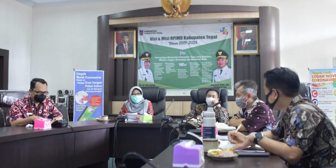 Slawi – Bupati Tegal Umi Azizah mengarahkan agenda kebijakan pembangunan daerahnya di tahun 2022 pada tiga hal, yaitu pemulihan dan penguatan kondisi sosial-ekonomi masyarakat, penataan ruang perkotaan untuk menciptakan kota sehat dan percepatan pembangunan ekonomi kawasan Brebes-Tegal-Pemalang (Bregasmalang). Hal tersebut disampaikan Umi saat memimpin Forum Virtual Konsultasi Publik Penyusunan Rencana Kerja Pemerintah Daerah (RKPD) Kabupaten Tegal Tahun 2022 di Ruang Rapat Sekda, Kamis (28/01/2021) pagi.