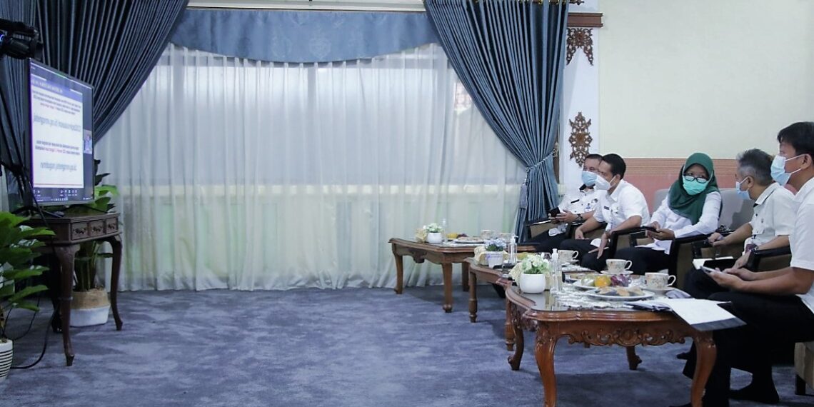 Bupati Tegal Umi Azizah didampingi Kepala Badan Perencanaan Pembangunan Daerah dan Penelitian Pengembangan (Bappeda dan Litbang) Kabupaten Tegal Bambang Kusnandar Aribawa saat mengikuti Musrenbang Provinsi Jawa Tengah melalui virtual pada Rabu (10/02/2021) di Rumah Dinas Bupati Tegal.