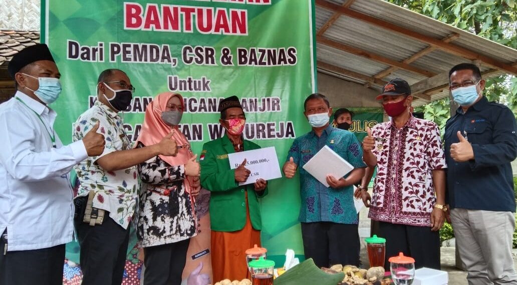 Warureja – Bantuan perbaikan rumah yang rusak berat dan ringan disalurkan Pemerintah Kabupaten Tegal kepada warga korban banjir di wilayah Kecamatan Warureja. Simbolis penyerahan bantuan rehabilitasi 10 unit rumah senilai Rp 40 juta ini berlangsung di halaman rumah salah satu korban bencana di Desa Sukareja, Kecamatan Warureja, Kamis (04/03/2021). Bantuan tersebut berasal dari dana tanggung jawab sosial lingkungan perusahaan RS Mitra Siaga, Kramat, Kabupaten Tegal dan Badan Amil Zakat Nasional (Baznas) Kabupaten Tegal.