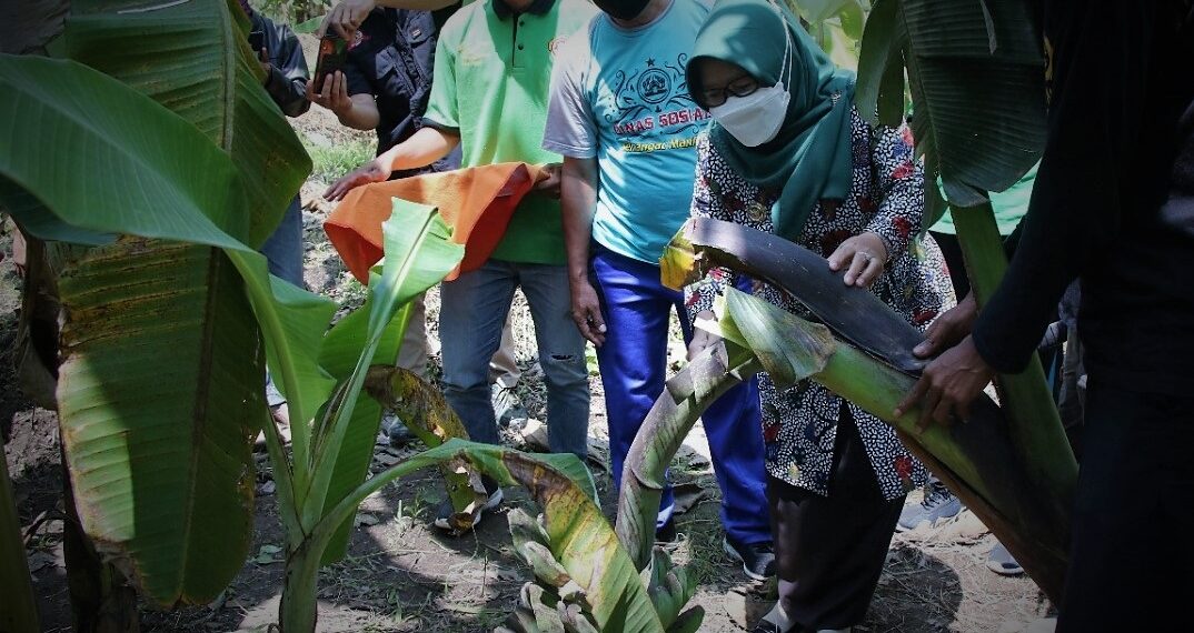 Slawi – Situasi krisis akibat pandemi Covid-19 telah mendorong lahirnya gagasan kreatif. Salah satunya inisiasi dari pemuda Karang Taruna yang menanami lahan kosong seluas 1.050 meter persegi milik Dinas Sosial Kabupaten Tegal dengan 120 batang pohon pisang. Dari lahan tersebut, berhasil dipanen 150 kilogram pisang hanya dari sembilan pohon yang buahnya sudah matang lebih dulu.
