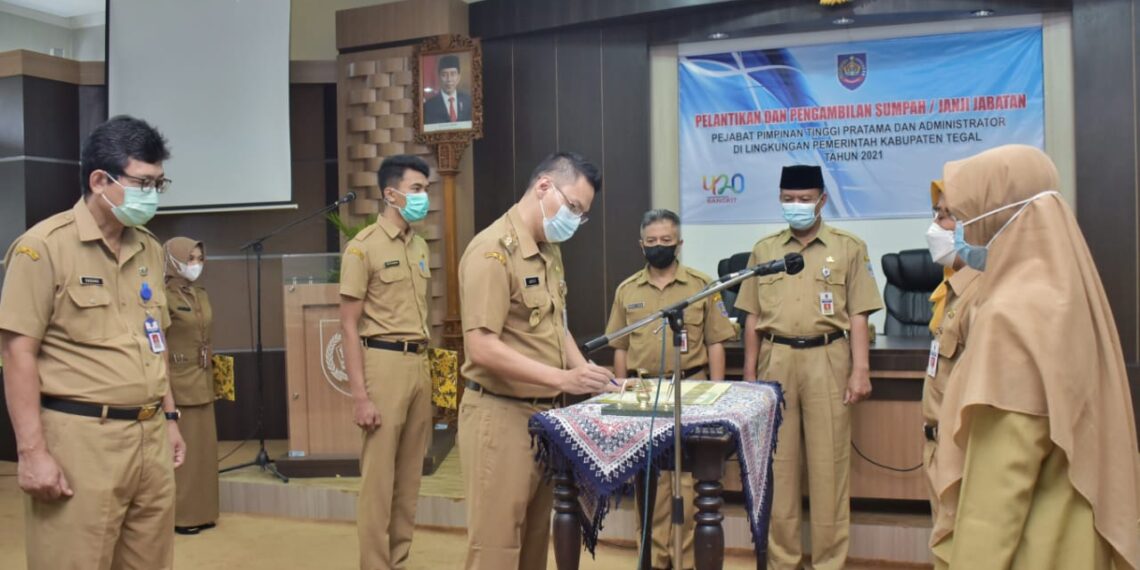 Slawi – Sikap independen dan profesional menjadi nilai yang harus dijunjung tinggi setiap aparatur pengawas internal pemerintah. Pernyataan tersebut disampaikan Wakil Bupati Tegal Sabilillah Ardie saat memimpin pelantikan dan pengambilan sumpah jabatan inspektur dan inspektur pembantu di Ruang Rapat Bupati, Selasa (25/05/2021) pagi.