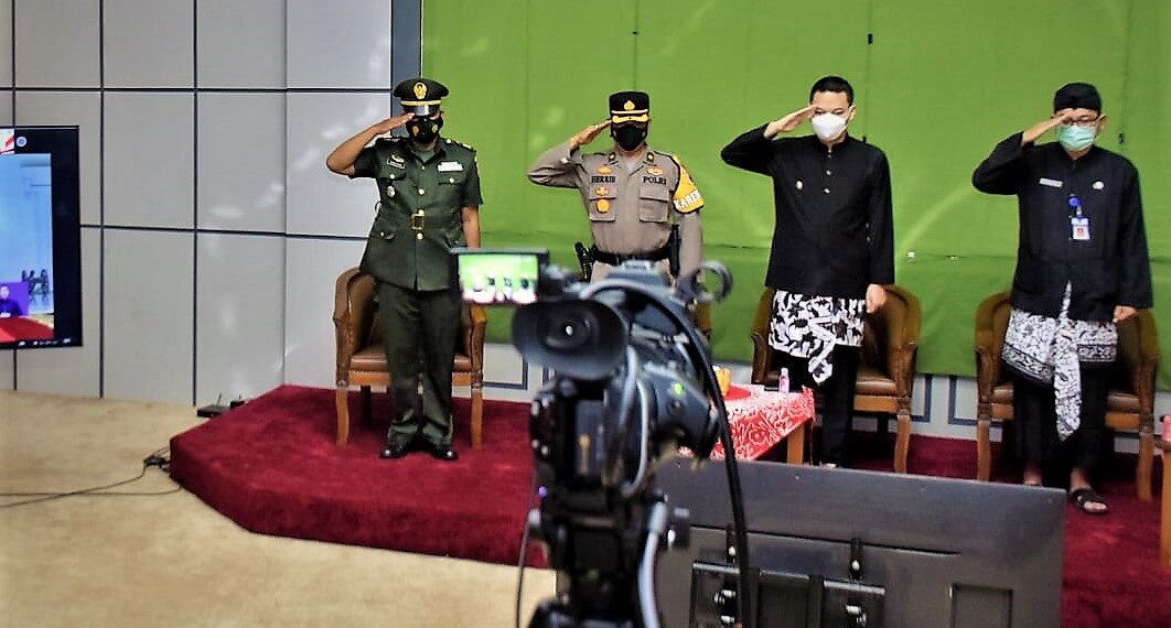 Slawi – Upacara Peringatan Hari Lahir Pancasila Tahun 2021 mengusung tema “Pancasila dalam tindakan bersatu untuk Indonesia tangguh”. Upacara yang digelar secara luring dan daring di Istana Kepresidenan Bogor, Jawa Barat tersebut diikuti oleh Pemerintah Kabupaten Tegal bersama jajaran forum komunikasi pimpinan (Forkopimda) Kabupaten Tegal, Selasa (01/06/2021) pagi dari Gedung Dadali Cinema Center.