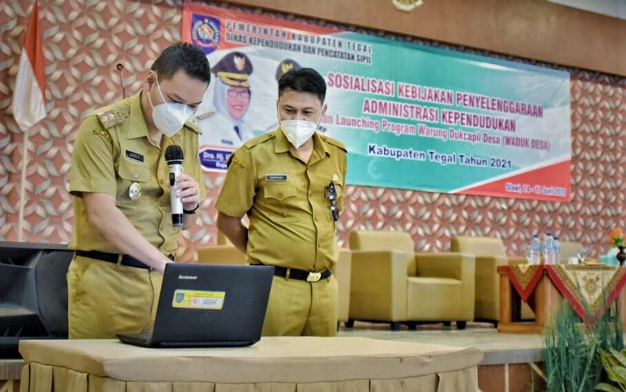 Slawi – Upaya mewujudkan pelayanan yang prima di bidang administrasi kependudukan (adminduk), Pemkab Tegal melalui Dinas Kependudukan dan Pencatatan Sipil (Disdukcapil) Kabupaten Tegal mengembangkan layanan warung Dukcapil desa atau Waduk Desa. Tercatat setidaknya ada 76 desa yang tersebar di 17 wilayah kecamatan di Kabupaten Tegal dapat melayani pembuatan akta kelahiran dan akta kematian berikut perubahan kartu keluarganya.