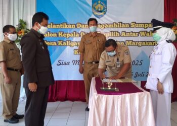 Kaligayam - Camat Margasari Sularko Bekti Raharjo lantik Kepala Desa (Kades) Kaligayam Eni Triastuti hasil pemilihan kepala desa antar waktu. ...