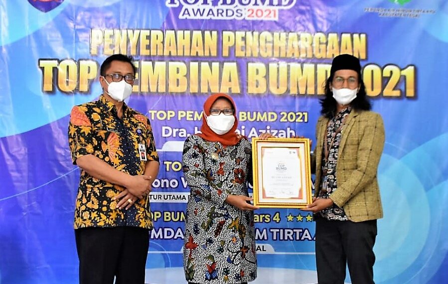 Slawi – Bupati Tegal Umi Azizah meraih penghargaan Top Pembina BUMD 2021 dari Majalah Top Business. Umi dinilai layak oleh dewan juri karena berkinerja baik dan berkontribusi besar dalam pembangunan daerah serta memiliki strategi dan inovasi di masa pandemi Covid-19 agar bisnis Badan Usaha Milik Daerah (BUMD) tetap tumbuh dan berkelanjutan.
