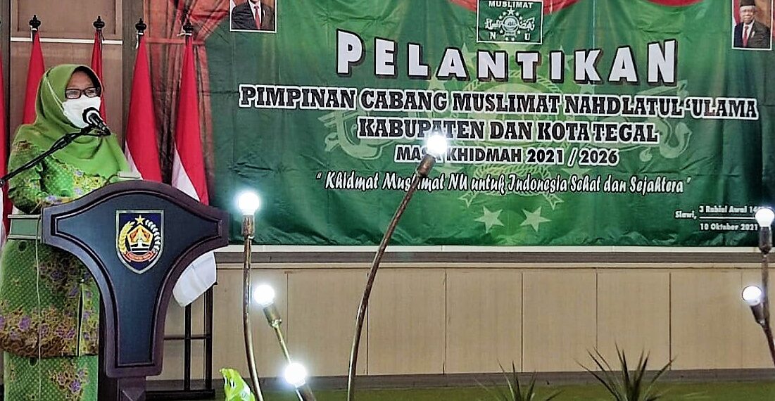 Slawi – Organisasi perempuan seperti Muslimat NU memiliki peran penting mensukseskan pembangunan bangsa, mulai dari pemberdayaan perempuan hingga pendidikan karakter anak. Pernyataan tersebut disampaikan Bupati Tegal Umi Azizah saat membuka acara pelantikan Pimpinan Cabang (PC) Muslimat Nahdlatul Ulama (NU) Kabupaten Tegal masa khidmah 2021-2026 di Pendopo Amangkurat, Minggu (10/10/2021) pagi.