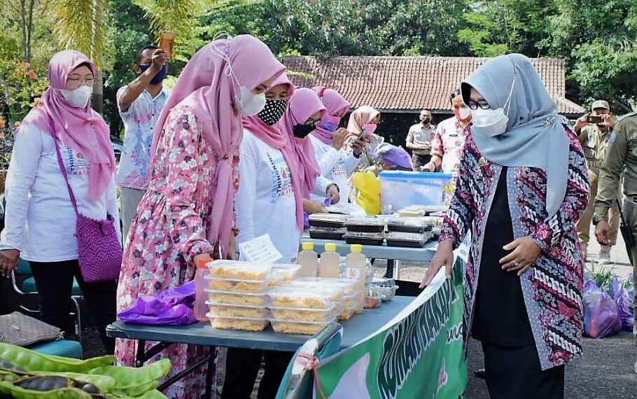 Slawi – Upaya pemulihan ekonomi lokal dengan menggerakkan sektor usaha mikro, kecil dan menengah (UMKM) pasca menurunnya kasus penularan Covid-19 terus dikebut Pemkab Tegal. Salah satunya dengan menggelar bazar pekan jajan lokal secara bergilir setiap minggunya di organisasi perangkat daerah Pemkab Tegal sebagai ajang promosi produk lokal.