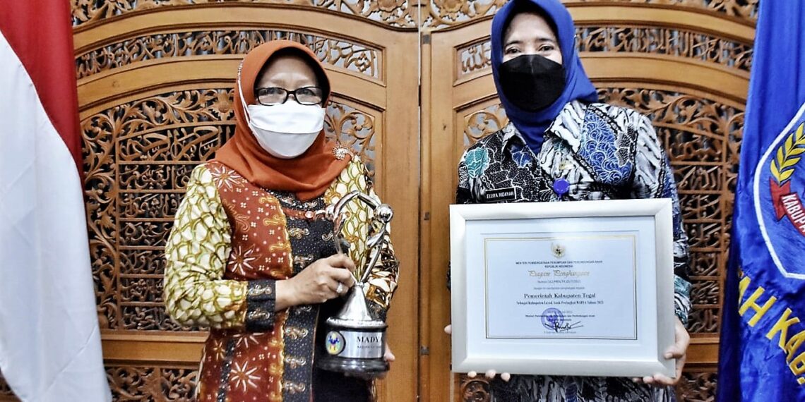 Slawi – Dinilai berhasil dalam menerapkan dan melaksanakan kebijakan pengarusutamaan gender, pemberdayaan perempuan, perlindungan anak, dan pemenuhan hak anak, Kabupaten Tegal kembali menerima penghargaan Anugerah Parahita Ekapraya (APE) Tahun 2020 tingkat madya dari Kementerian Pemberdayaan Perempuan dan Perlindungan Anak (PPPA).