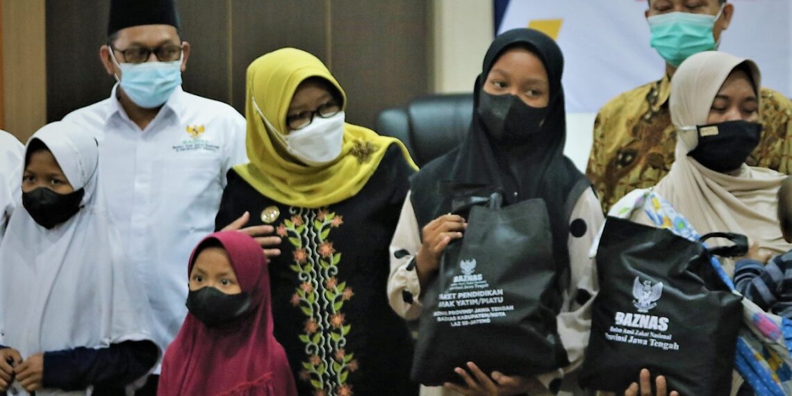 Slawi – Selama hampir 20 bulan musibah pandemi Covid-19, sebanyak 427 anak di Kabupaten Tegal kehilangan orang tua, baik ayah, ibu ataupun keduanya. Untuk membantu meringankan beban anak, Badan Amil Zakat Nasional (Baznas) Kabupaten Tegal dan Provinsi Jawa Tengah salurkan 206 paket berisi peralatan tulis, suplemen makanan, jajanan anak hingga perlengkapan mandi kepada perwakilan anak yatim di ruang rapat Bupati Tegal, Senin (18/10/2021) pagi.
