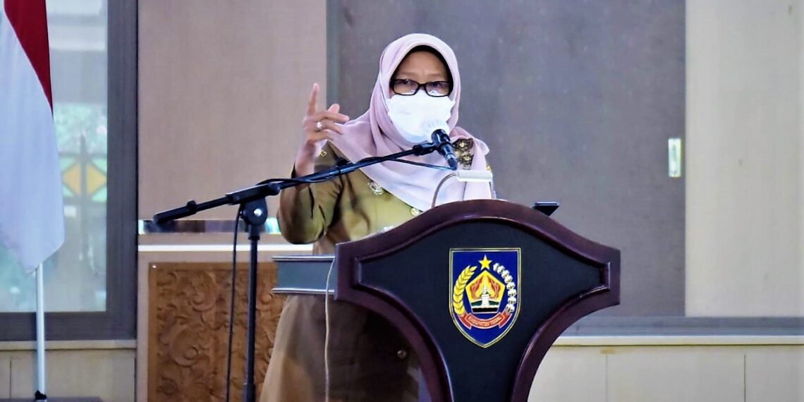 Slawi – Pelaksanaan vaksinasi Covid-19 di Kabupaten Tegal baru menjangkau angka 44,63 persen dari kelompok target sasaran yang jumlahnya mencapai 1.226.768 jiwa. Informasi tersebut disampaikan Pelaksana Tugas (Plt) Kepala Dinas Kesehatan Kabupaten Tegal Hendadi Setiaji saat menggelar rapat evaluasi percepatan vaksinasi menuju kategori pemberlakuan pembatasan kegiatan masyarakat (PPKM) level dua, Selasa (09/11/2021) di Pendopo Amangkurat, Kantor Bupati Tegal.