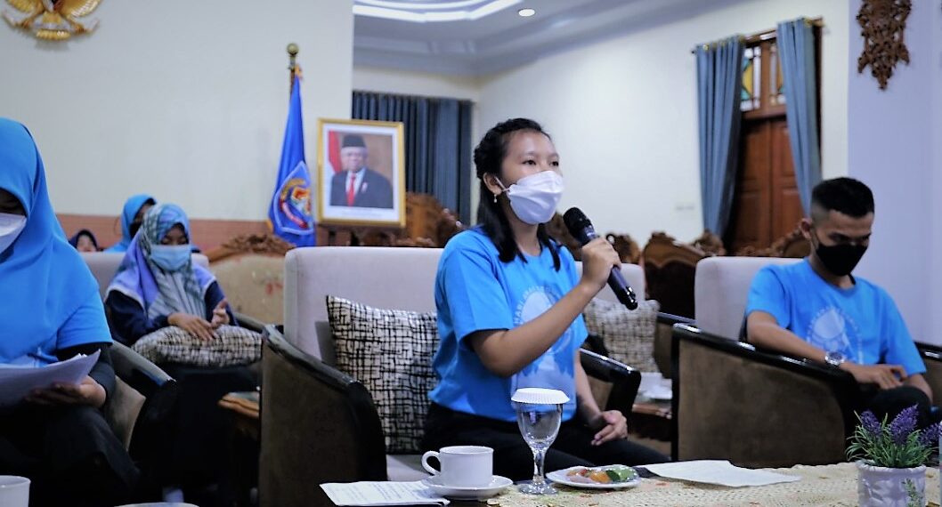 Slawi – Bupati Tegal Karen Citra Yehuni (17) suarakan hak anak saat rapat bersama Gubernur Jawa Tengah Ganjar Pranowo melalui aplikasi zoom meeting dari rumah dinas Bupati Tegal, Sabtu (20/11/2021) pagi. Karen adalah siswi kelas XI SMA Negeri 1 Slawi yang mendapat kesempatan “mengambil alih” peran Bupati Tegal Umi Azizah selama dua jam pada rangkaian peringatan Hari Anak Sedunia 2021 tingkat Jawa Tengah