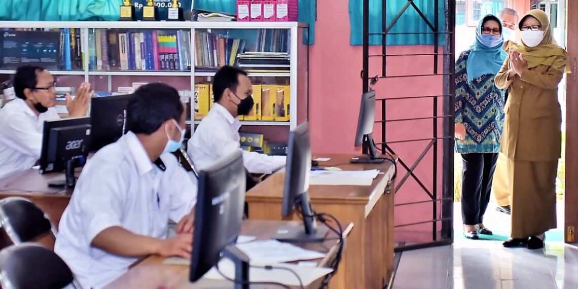 Slawi – Bupati Tegal Umi Azizah meninjau pelaksanaan seleksi kompetensi guru pegawai pemerintah dengan perjanjian kerja (PPPK) tahap dua di SMAN 1 Slawi, Selasa (07/12/2021) pagi. Seleksi guru PPPK di lingkungan Pemerintah Kabupaten Tegal tahap dua tahun 2021 yang menggunakan sistem Computer Assisted Test (CAT) ini diikuti oleh 3.179 orang peserta.