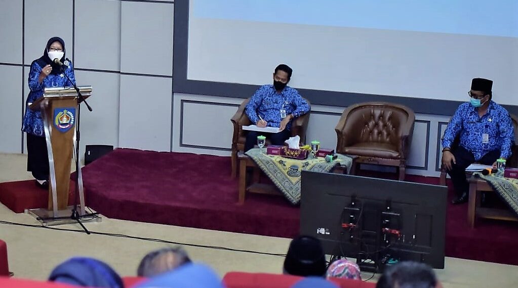 Bupati Tegal Umi Azizah memberikan pengarahan pada Rakor POK Triwulan IV Kabupaten Tegal di Gedung Dadali, Jumat (17/12/2021).