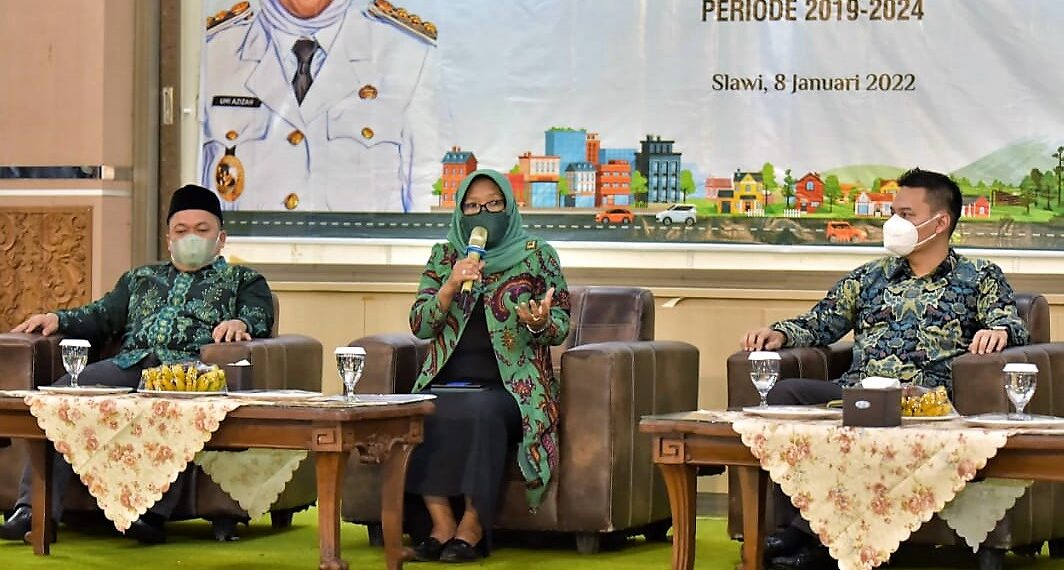 Slawi – Memasuki tahun ketiga kepemimpinan Bupati Tegal Umi Azizah dan Wakil Bupati Tegal Sabilillah Ardie periode 2019-2024, Pemkab Tegal gelar acara refleksi capaian program pembangunan tahun 2021. Acara yang disiarkan langsung melalui streaming internet dan dihadiri unsur legislatif, Forum Komunikasi Pimpinan Daerah (Forkopimda), pelaku usaha, tokoh masyarakat hingga pimpinan organisasi kemasyarakatan ini berlangsung di Pendopo Amangkurat, Sabtu (08/01/2022) malam.