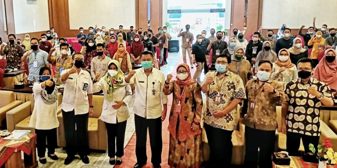 Sekretaris Daerah Widodo Joko Mulyono hadir dalam pembukaan acara pelatihan digital entrepreneurship dan peluncuran program Digital Entrepreneurship Academy (DEA) di Hotel Grand Dian, Slawi, Rabu (26/01/2022).