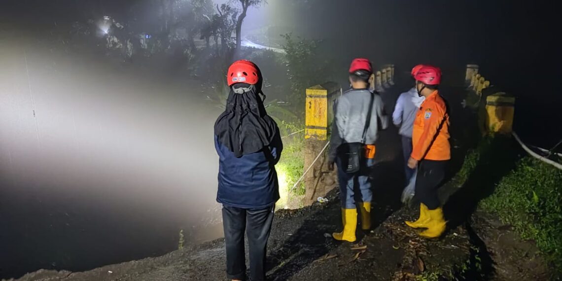 Tim BPBD Kabupaten Tegal sedang melakukan assement di lokasi tanah longsor Desa Pagerkasih Kecamatan Bumijawa pada Senin (17/01/2022) malam.