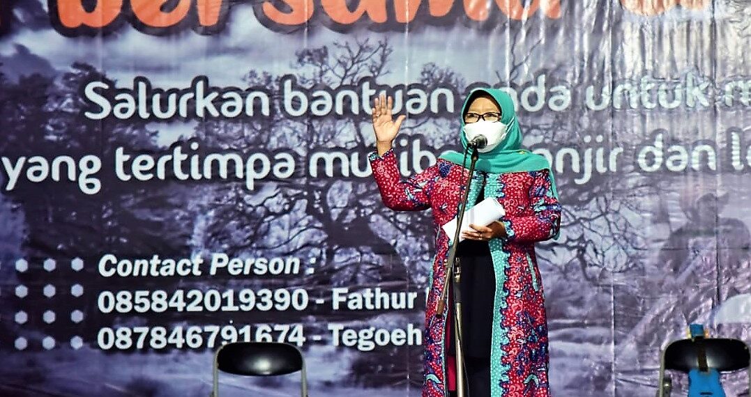 Bupati Tegal Umi Azizah hadir membuka acara penggalangan dana yang disertai doa bersama lintas agama dan kepercayaan. Acara yang berlangsung semalam tersebut mampu mengumpulkan dana masyarakat senilai Rp 12,85 juta, mie instan dan air mineral.
