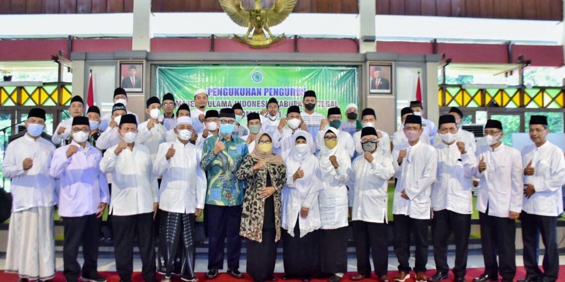 Slawi – Bupati Tegal Umi Azizah memandang Majelis Ulama Indonesia (MUI) memiliki peran penting dalam memoderasi kehidupan beragama, mewujudkan Islam tengahan yang rahmatan lil ‘alamin. Pesan ini disampaikan Umi saat acara Pengukuhan Pengurus Majelis Ulama Indonesia (MUI) Kabupaten Tegal Masa Khidmat 2022-2026 di Pendopo Amangkurat pada Sabtu (12/03/2022) pagi.