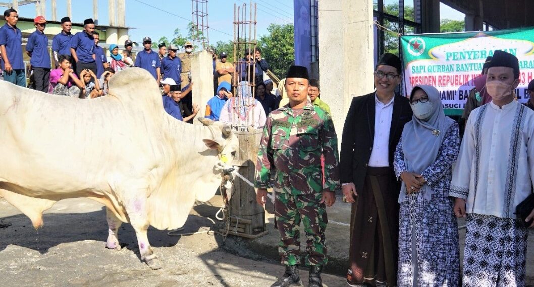 Pangkah – Presiden RI Joko Widodo melalui Pemerintah Provinsi Jawa Tengah yang diwakili oleh Kepala Biro Kesejahteraan Rakyat (Kabiro Kesra) Provinsi Jawa Tengah Imam Maskur menyerahkan bantuan kemasyarakatan berupa satu ekor sapi kurban jenis brahman seberat 990 kilogram untuk warga Desa Dermasuci, Kecamatan Pangkah.