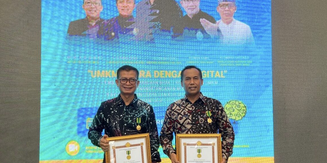 Bandung – Pada Peringatan Hari Nasional (Harnas) UMKM 2022, Pemerintah Kabupaten Tegal menerima dua penghargaan Jasa Bakti Koperasi dari Kementerian Koperasi dan Usaha Kecil dan Menengah (KemenKopUKM) Republik Indonesia. Penyerahan penghargaan ini diserahkan langsung oleh Menteri KopUKM Teten Masduki kepada Asisten Perekonomian dan Pembangunan Setda Kabupaten Tegal Hendadi Setiadji di Cihampelas Walk Kota Bandung, Jumat (12/08/2022) lalu.