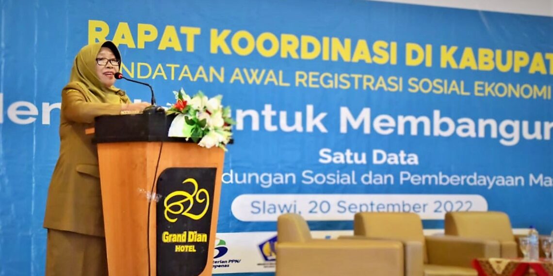 Slawi – Wujudkan sistem perlindungan sosial yang inklusif, Pemerintah berencana membangun basis data tunggal kondisi sosial-ekonomi penduduk. Hal ini disampaikan Bupati Tegal Umi Azizah saat membuka Rapat Koordinasi Pendataan Awal Registrasi Sosial Ekonomi (Regsosek) 2022 di Hotel Grand Dian Slawi, Selasa (20/09/2022) pagi.