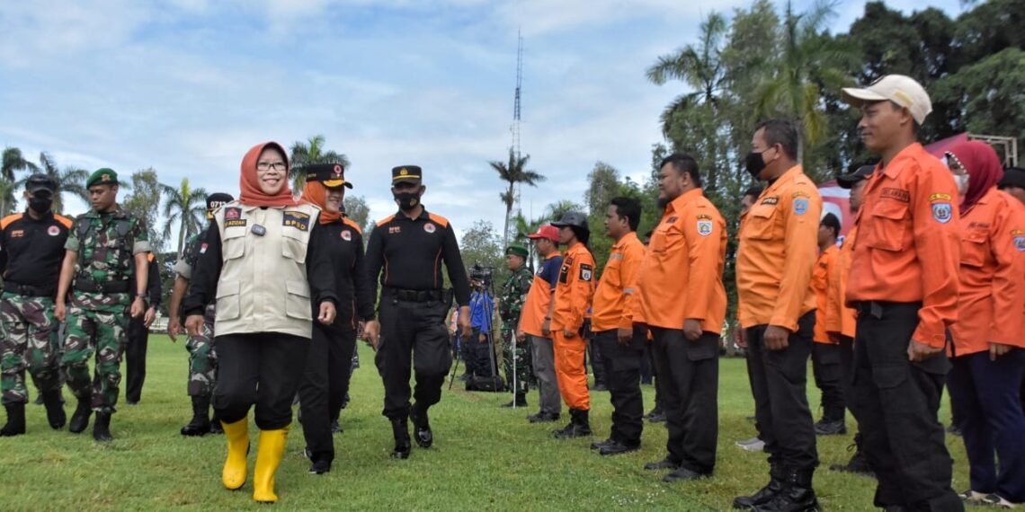 Slawi – Bencana tidak bisa dihadapi sendiri. Perlu peran pentaheliks dari mulai penguatan sistem peringatan dini, penyusunan rencana kontijensi, edukasi dan pelatihan kebencanaan hingga tanggap darurat. Pernyataan ini disampaikan Bupati Tegal Umi Azizah saat memimpin Apel Gelar Kesiapsiagaan Penanggulangan Bencana Alam di lapangan Pemda, Rabu (26/10/2022).