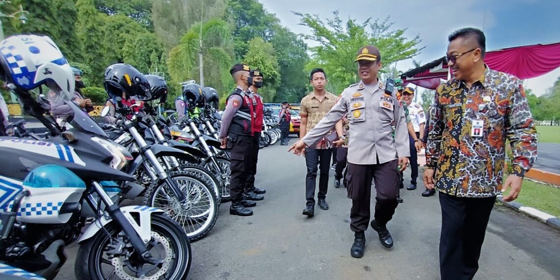 Slawi – Sekretaris Daerah Kabupaten Tegal Widodo Joko Mulyono lakukan pengecekan personel dan kendaraan yang akan digunakan untuk pengamanan Natal 2022 dan Tahun Baru 2023 (Nataru). Hal ini dilakukan Joko saat memimpin Apel Gelar Pasukan Operasi Lilin di lapangan Pemda Kabupaten Tegal, Kamis (22/12/2022).