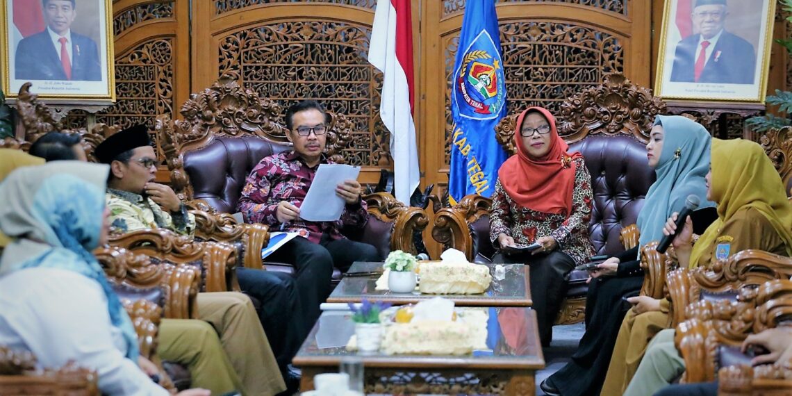 Slawi – Pemkab Tegal bersama Badan Kependudukan dan Keluarga Berencana Nasional (BKKBN) RI berkomitmen berkolaborasi menurunkan angka prevalensi stunting hingga 14 persen di tahun 2024 mendatang. Hal tersebut disampaikan Bupati Tegal Umi Azizah saat berlangsung audiensi bersama Kepala BKKBN RI Hasto Wardoyo di rumah dinas Bupati Tegal, Selasa (31/01/2023).