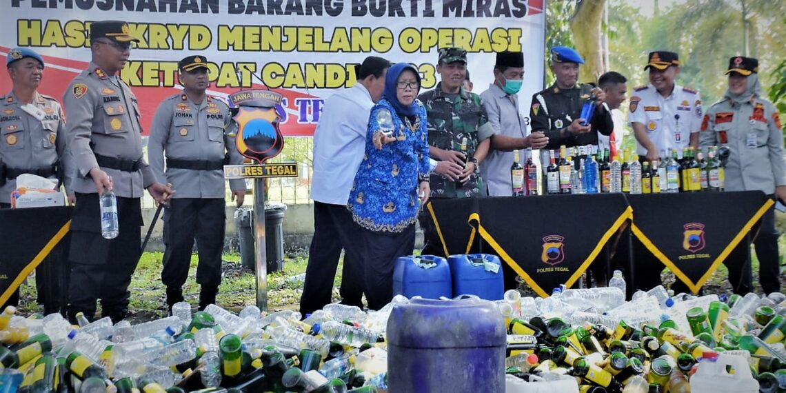 Usai apel, Bupati Umi bersama unsur Forkopimda bergegas menuju lokasi tempat pemusnahan barang bukti tindak pidana ringan minuman keras (miras) yang tak jauh dari lapangan upacara. Ribuan botol miras tersebut merupakan hasil sitaan patroli kegiatan rutin yang ditingkatkan (KRYD) dari sejumlah tempat penjualan maupun produksi miras.