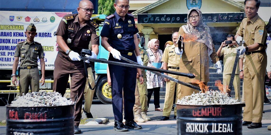Slawi – Sebanyak 2.796.140 batang rokok ilegal senilai Rp 2,3 miliar dimusnahkan Kantor Pengawasan dan Pelayanan Bea dan Cukai Tipe Madya Pabean C Tegal (KPPBC Tegal). Simbolis pemusnahan rokok ilegal ini dilakukan oleh Bupati Tegal Umi Azizah bersama unsur forum komunikasi pimpinan daerah (Forkopimda) Kabupaten Tegal di Lapangan Kantor Pemkab Tegal, Selasa (25/07/2023) pagi.