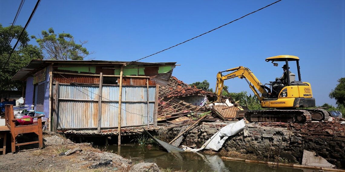 Pangkah – Sedikitnya 37 bangunan tak berizin yang berdiri di sisi utara makam cina (Bong Pai) dan sekitaran eks Pasar Hewan Curug Pangkah dibongkar dalam dua hari terakhir ini, Rabu-Kamis, (26-27/07/2023). Selain menutupi secara permanen bagian atas saluran sekunder yang ada, pendirian bangunannya juga tidak sesuai peruntukan lahan.