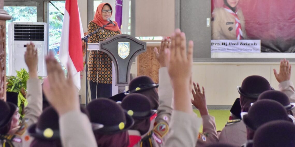 Slawi – Bupati Tegal Umi Azizah melepas 32 peserta Kontingen Pramuka Penegak dan Pandega Kabupaten Tegal yang akan mengikuti Raimuna Nasional (Rainas) ke-12 Tahun 2023 di Bumi Perkemahan dan Graha Wisata Pramuka Cibubur, Jakarta Timur. Acara pelepasan kontingen yang beserta empat orang pendampingnya ini berlangsung di Pendopo Amangkurat, Kamis (10/08/2023).