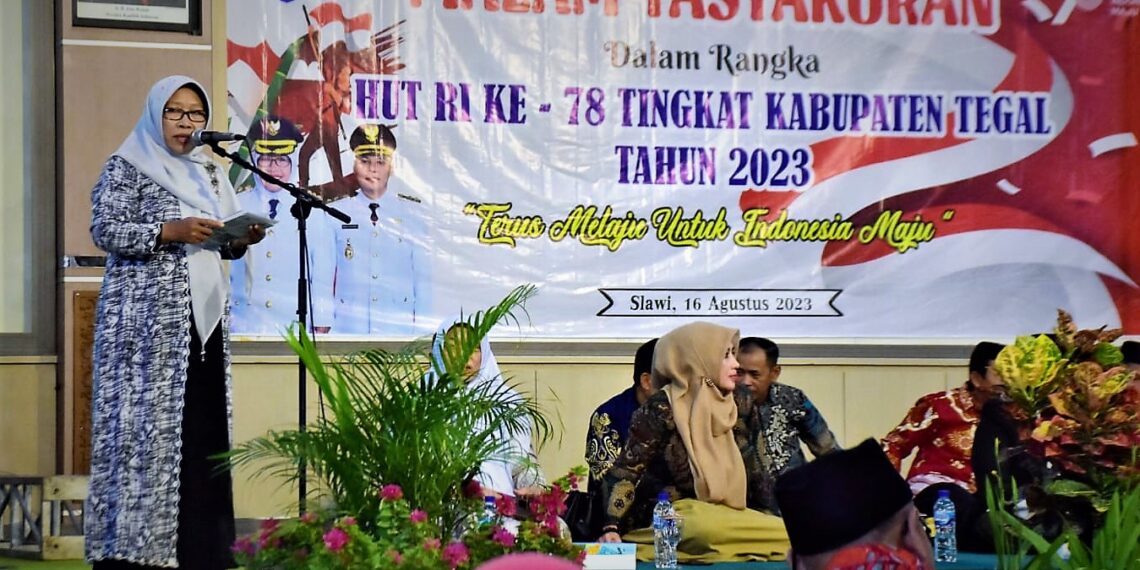 Slawi – HUT Kemerdekaan RI menjadi momentum bagi generasi muda dalam menumbuhkan semangat patriotisme dan membangkitkan jiwa nasionalisme. Hal ini disampaikan Bupati Tegal Umi Azizah saat Malam Resepsi Peringatan HUT ke-78 Kemerdekaan RI di Pendopo Amangkurat, Kamis (17/08/2023).