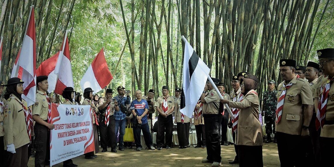 Bumijawa – Bupati Tegal Umi Azizah pimpin upacara serah terima Estafet Tunas Kelapa (ETK) Gerakan Pramuka Kwartir Daerah (Kwarda) Jawa Tengah dari Kwartir Cabang (Kwarcab) Brebes kepada Kwarcab Kabupaten Tegal di objek wisata kuliner Pasar Slumpring, Desa Cempaka, Kecamatan Bumijawa, Sabtu (26/08/2023).